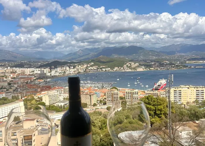 T2 Avec Vue Panoramique Apartment Ajaccio is located 1.7 km from the Place Foch and a 20-minute walk from the Place De Gaulle. Offering in the vicinity of the Church of Our Lady of Mercy, this apartment provides guests with a terrace with seaside views.